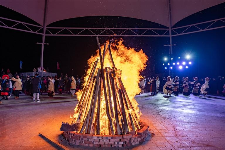 5月18日傍晚,海拔4700米的当雄县寒风凛冽,却抵挡不住人们的热情。星空下的黑帐篷内,闪烁出温暖的灯光,帐篷外人头攒动,欢快的音乐声、此起彼伏的欢呼声回荡在高原夜空。身着盛装的藏族群众围成圆圈,跳起热情的锅庄,舞动的身影如同跳跃的篝火,以最热情的方式迎接5月19日纳木措开湖日的到来……
