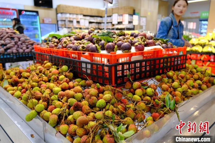 5月27日,西藏拉萨一连锁超市销售来自海南的“妃子笑”荔枝。中新社记者 江飞波 摄