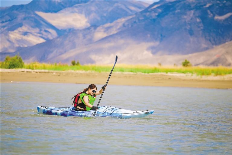 皮划艇比赛环节,运动员在雅鲁藏布江上劈波斩浪。