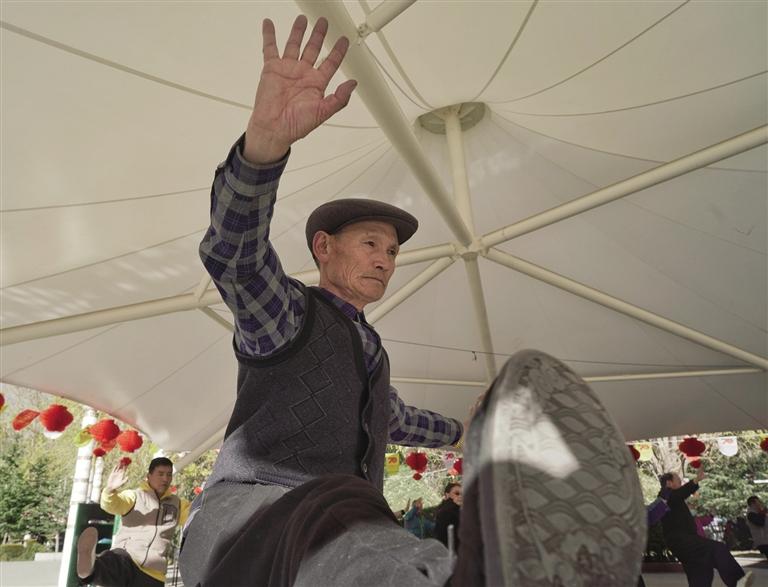 老年人在宗角禄康公园健身。