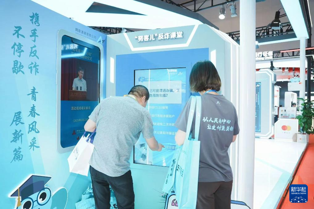 图为2025中国国际金融展上,参观者在网联清算公司展台参加反诈互动答题。(网联清算公司供图)