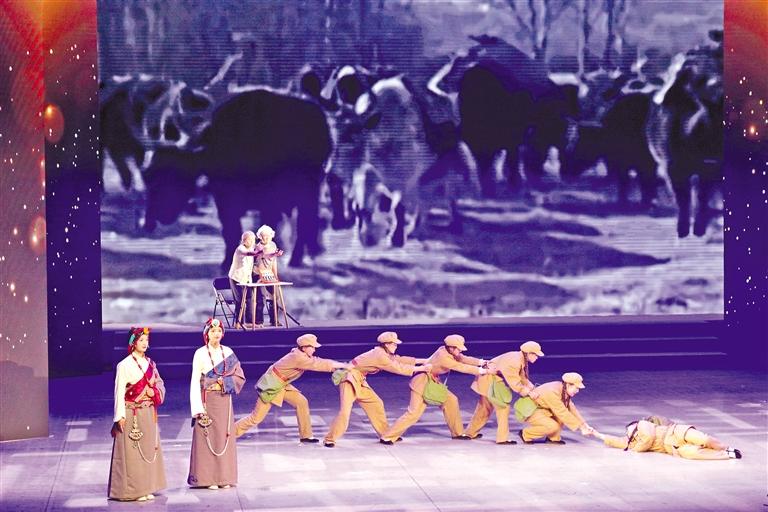 昌都市代表队率先登台。他们带来的《星火照天路》,通过进藏女兵跨越70年的隔空对话,讲述当年修建“两路”的难忘岁月。