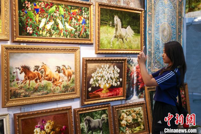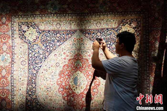 图为市民拍摄伊朗地毯。中新社记者 薛蒂 摄