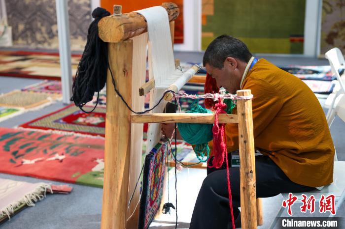 图为现场展示加牙藏族织毯技艺。中新社记者 薛蒂 摄