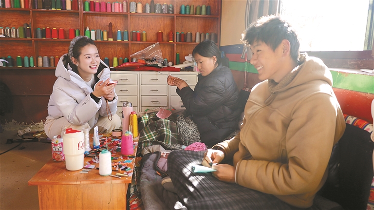 为深入了解堆绣,记者循着“拉萨策门林民族手工传承中心”的指示牌,来到夺底村一处僻静的拐角院落。这里,是德吉的工作室,也是技师们的家园。