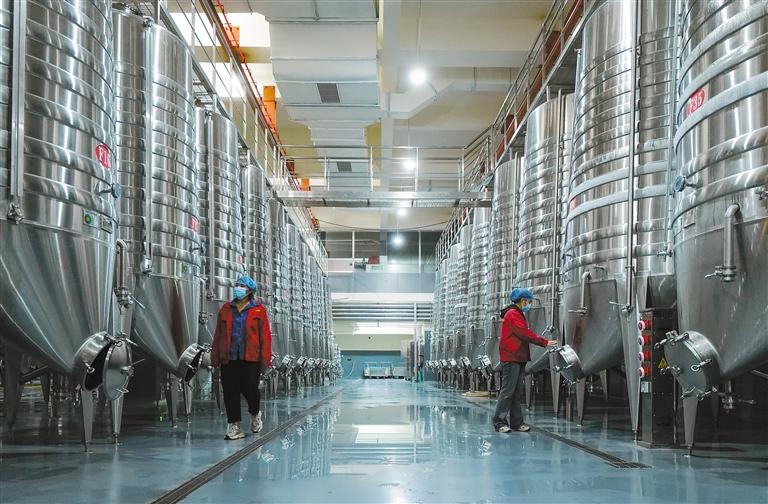 研究人员正在检测红酒品质。记者 丹增群培 摄