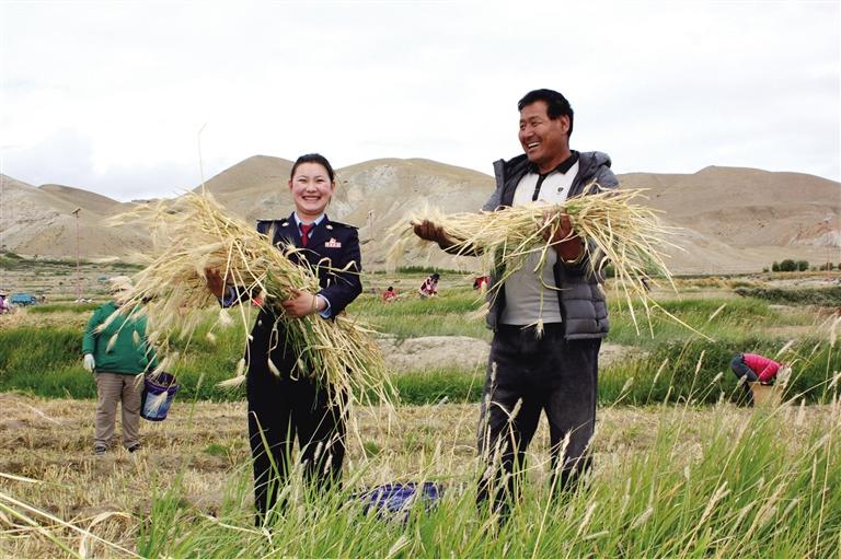 普兰县税务干部走进田间地头助力秋收。图由自治区税务局提供