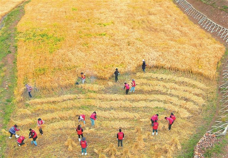 9月2日,昌都市丁青县色扎乡组织23名党员干部组成帮扶小队,开展秋收助农志愿服务。在田间地头,党员干部们分工协作,有条不紊地进行收割、搬运、晾晒,帮助卡通村缺乏劳动力的家庭抢收农作物。