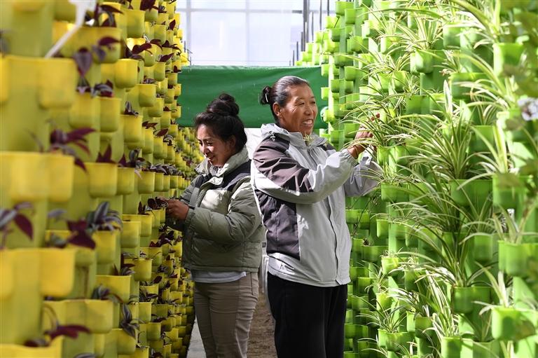 图为拉萨市才纳国家现代农业示范园区的工作人员正在育苗。西藏日报记者 洛桑 摄