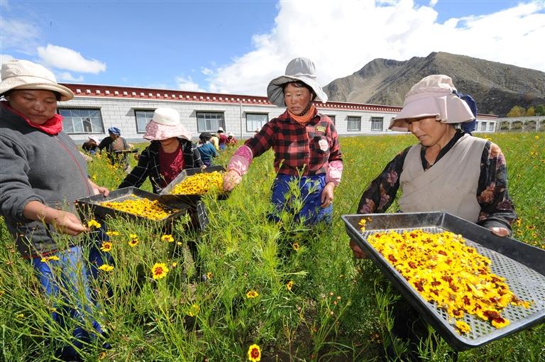 图为拉萨市曲水县才纳乡现代农业科技园的工作人员正在采摘雪菊。西藏日报记者 白玛泽旺 摄