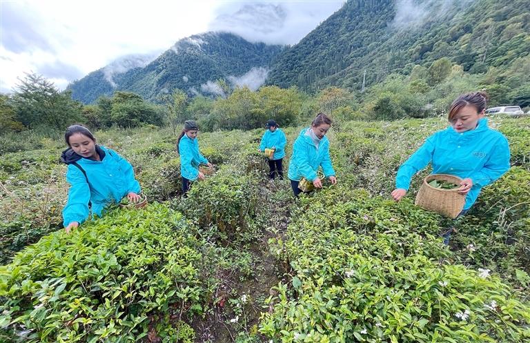 图为林芝市易贡茶场的员工正在茶田间采茶。西藏日报记者 白玛泽旺 摄