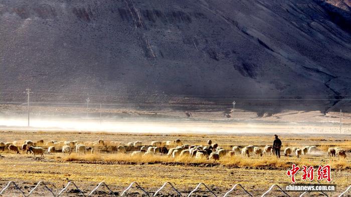 图为定日县长所乡村民在田间放羊。贡桑拉姆 摄