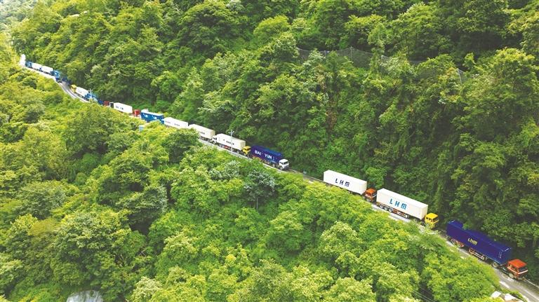 满载出口货物的车辆有序候检。通讯员 蒋美灵 摄