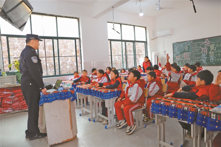 林芝边境管理支队格当边境派出所民警为格当乡小学学生上普法课。记者 彭琦 通讯员 陈熙涵 摄影报道