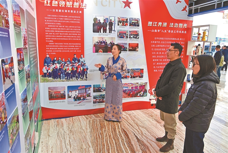 在全区“宪法宣传周”活动暨“八五”普法成果展示活动上,市民游客观看普法展览。记者 唐斌 王敏 摄影报道