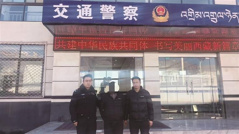 网上在逃人员被抓。图由拉萨交警提供