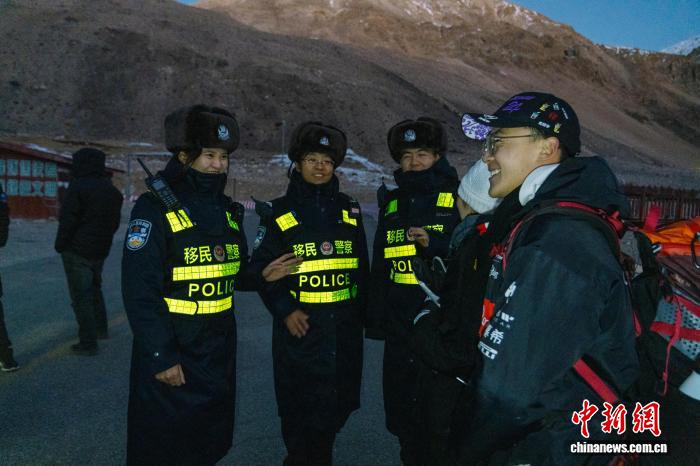 24日,西藏出入境边防检查总站珠峰边境派出所的移民管理警察们穿梭在珠峰大本营景区的各个角落,开展常态化巡逻执勤工作。