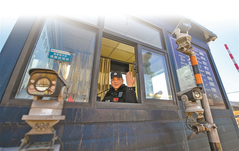 抚平衣领、扣紧袖口、戴正警帽后,次旦加布精神抖擞地转身走向岗亭,换岗执勤。