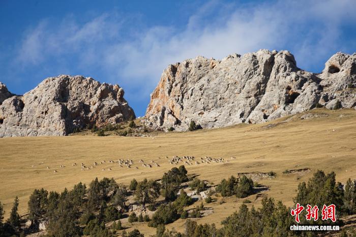 资料图为在青海省玉树藏族自治州囊谦县尕尔大峡谷内的岩羊群。马铭言 摄