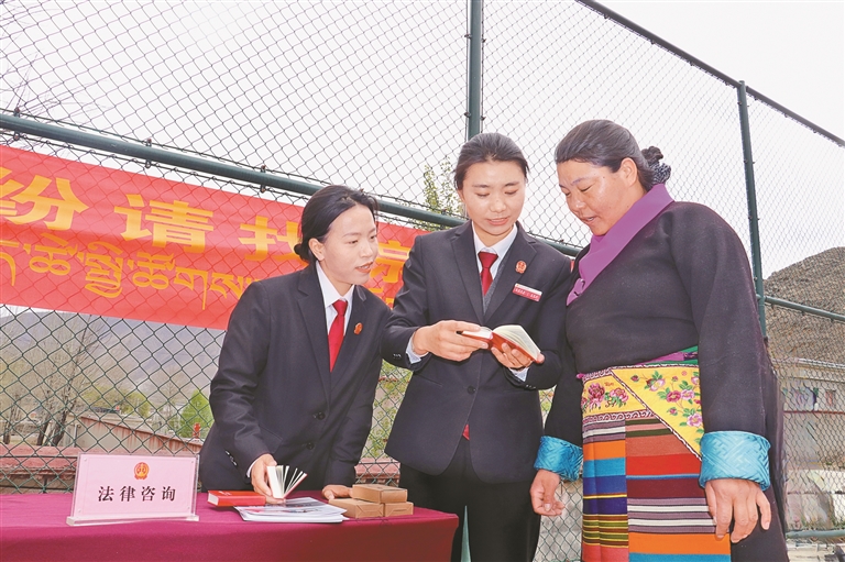 图为桑日县人民法院干警为群众答疑解惑。记者 巴桑旺姆 摄