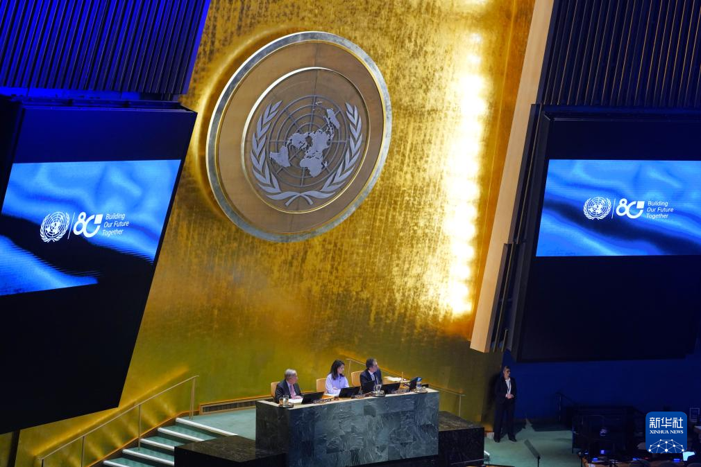 这是9月22日在位于纽约的联合国总部拍摄的纪念联合国成立80周年高级别会议现场。新华社记者 李睿 摄