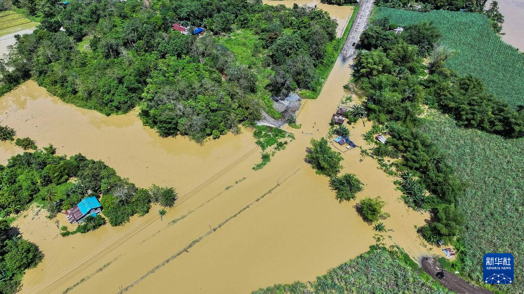 这是10月19日在菲律宾卡皮斯省拍摄的被洪水淹没的道路。新华社发(西米沙鄢区公共工程与公路部供图)