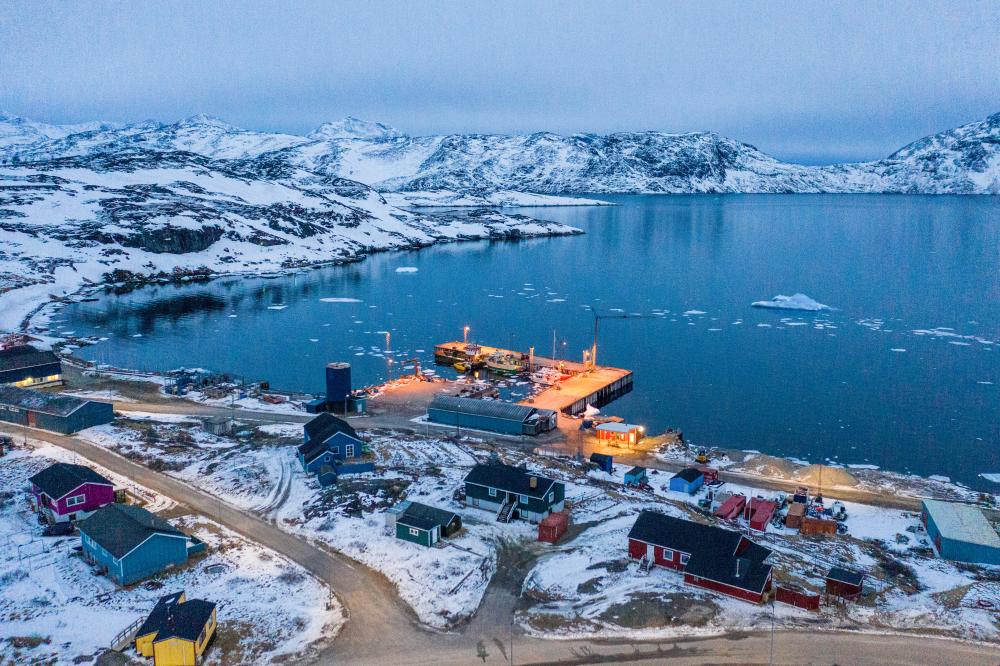 这是3月21日拍摄的丹麦自治领地格陵兰岛纳尔萨克镇的码头(无人机照片)。新华社记者彭子洋摄