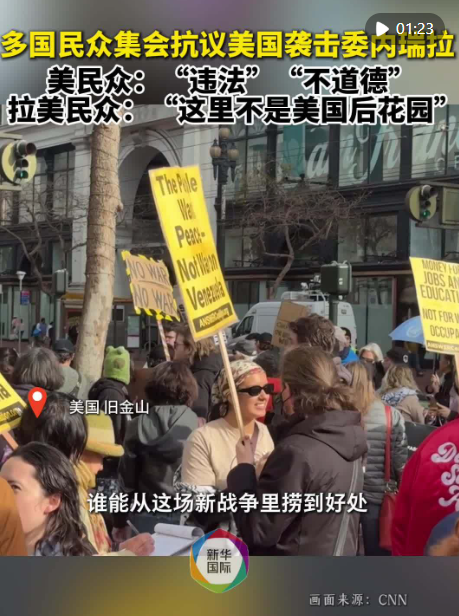 1月3日,美国多地及英国、巴西、古巴等多国爆发抗议集会,谴责美军3日凌晨突袭委内瑞拉并抓走委总统及其夫人。美国民众谴责美国行为“非法”“不道德”。