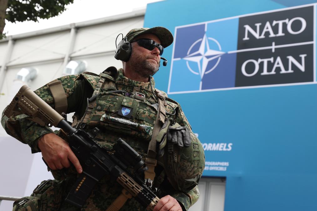 2025年6月24日,在荷兰海牙,安保人员在北约峰会现场警戒。新华社记者赵丁喆摄