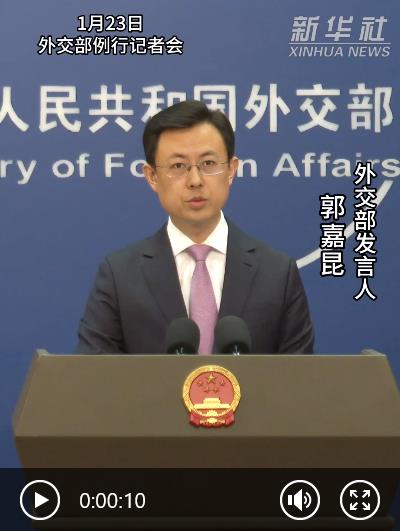 新华社北京1月23日电 外交部发言人郭嘉昆23日表示,无论形势如何变化,中国将始终做不确定世界中的“压舱石”,以自身发展为各国共同发展提供机遇、信心和动力。