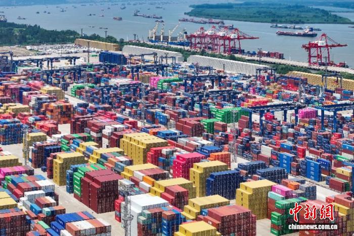 2025年7月14日,航拍长江沿线南京龙潭港进出口集装箱码头。(资料图) 中新社记者 泱波 摄