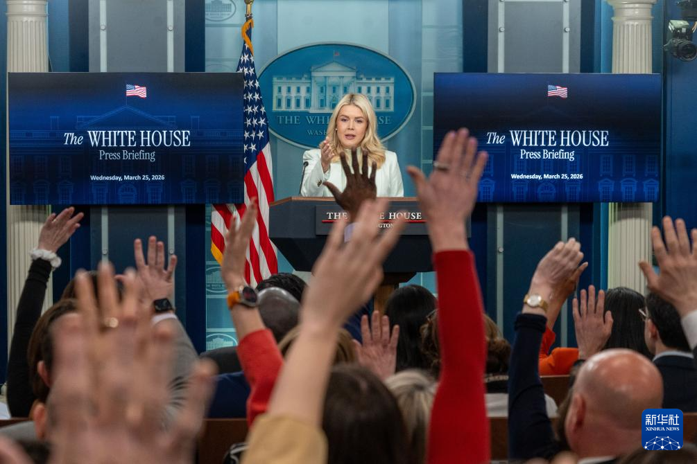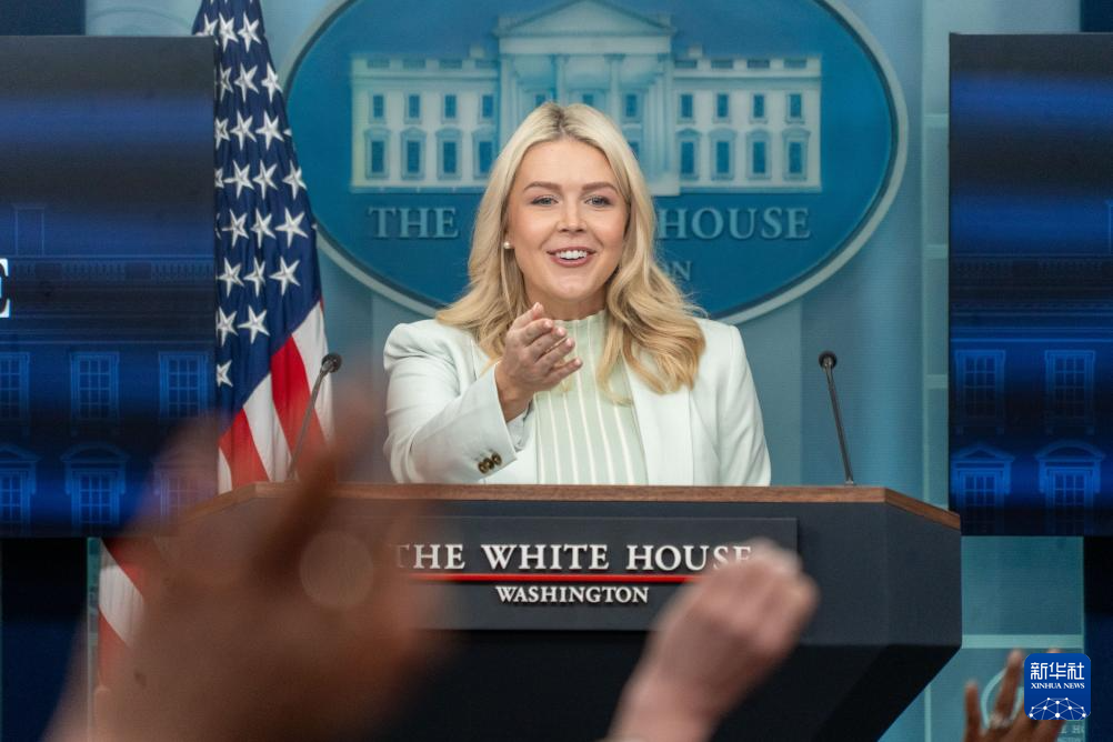 3月25日,在美国首都华盛顿白宫,白宫新闻秘书莱维特出席记者会。新华社发(李源清摄)