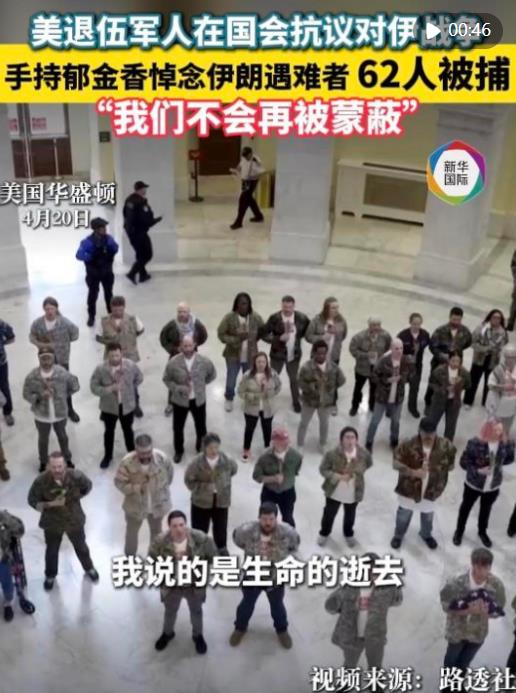 数十名美国退伍军人及其家属20日在美国会大厦举行抗议活动,呼吁特朗普政府停止对伊朗的军事行动。活动中至少62人被捕。