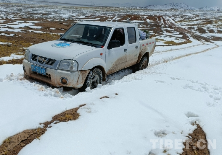 图为巡护途中汽车陷入泥地 图片由索南米玛提供