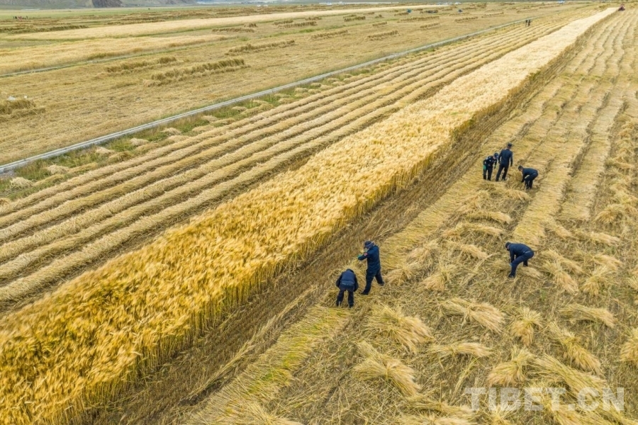 中国西藏网讯 金秋时节,青稞飘香。9月底,西藏日喀则边境管理支队涅如麦边境派出所民警们深入田间,在广袤的田野上,与农牧民一同俯身劳作,挥镰收割,抢收青稞。金黄麦浪中,那一抹抹“警察蓝”与辛勤的群众构成了一幅警民情深、秋收喜悦的动人画卷。(中国西藏网 通讯员/叶轶 记者/赵振宇)