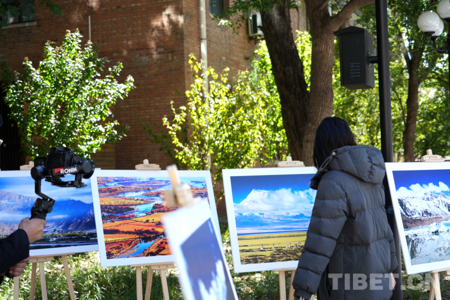 图为学生驻足观看西藏风光、人文等图片展 摄影:赵佳