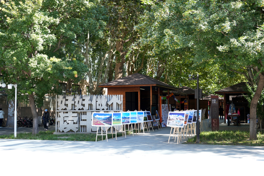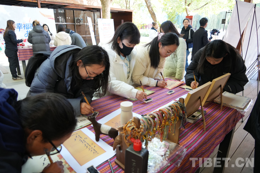 金秋正午,中国传媒大学图书馆门口的白杨大集分外热闹。上午课结束后同学们纷纷走进文化市集,通过学写藏文、绘制唐卡、制作藏式印章、有奖知识互动等活动,以青春视角与西藏文化进行一场近距离的互动交流,探索与感受民族文化的魅力。