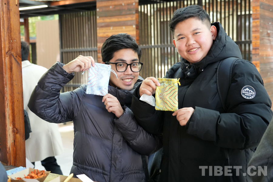 留学生们也纷纷加入体验活动,来自泰国的留学生林同学说:“通过参加活动体验藏文化,我非常喜欢做香囊,藏族生活给人一种简单、放松、贴近自然的印象,这种方式和泰国当地比较接近,注重简单、注重自然。”