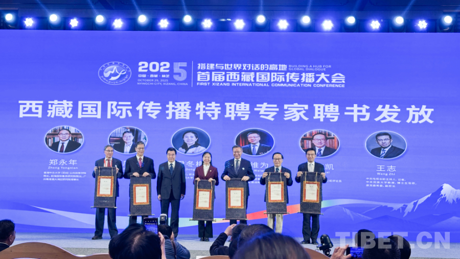 图为在首届西藏国际传播大会上西藏国际传播特聘专家聘书发放仪式 摄影:杨眉笑