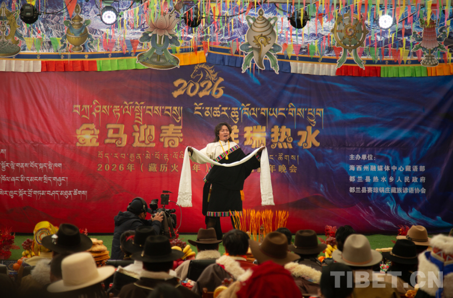 中国西藏网讯 1月16日至17日,在2026年藏历火马新年来临之际,一场主题为“金马迎春·祥瑞热水”的藏历新年晚会在青海省海西蒙古族藏族自治州都兰县热水乡赛什堂村举办并完成录制。晚会由海西州融媒体中心联合热水乡党委、政府及都兰县赛琼锅庄藏族谚语协会共同打造,所有节目均取材于当地农牧民生活与艺术传统,生动展现了新时代农牧民的精神风貌与文化自信。