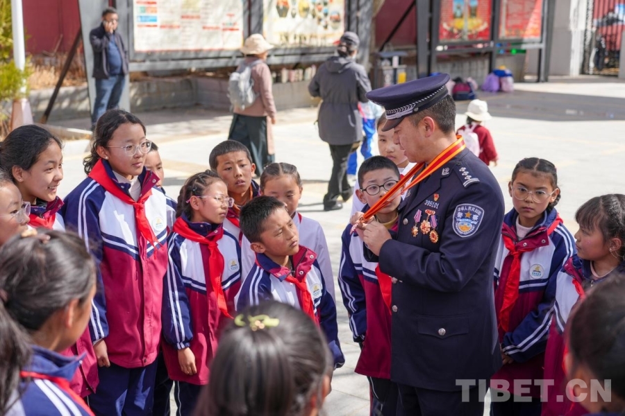 西藏日喀则边境管理支队民警现场为少先队员宣讲英烈事迹