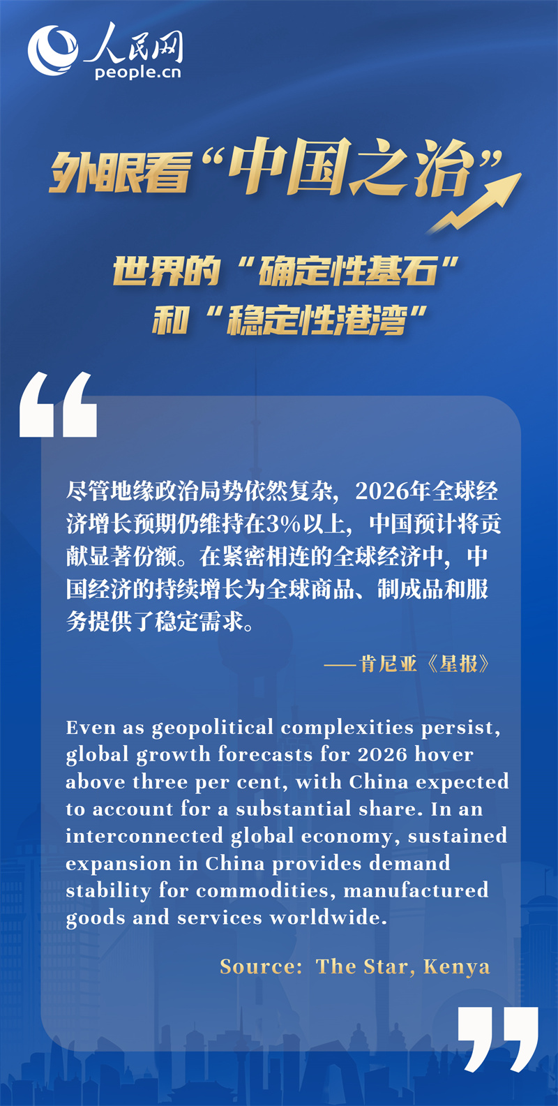 外眼看“中国之治”:世界的“确定性基石”和“稳定性港湾”