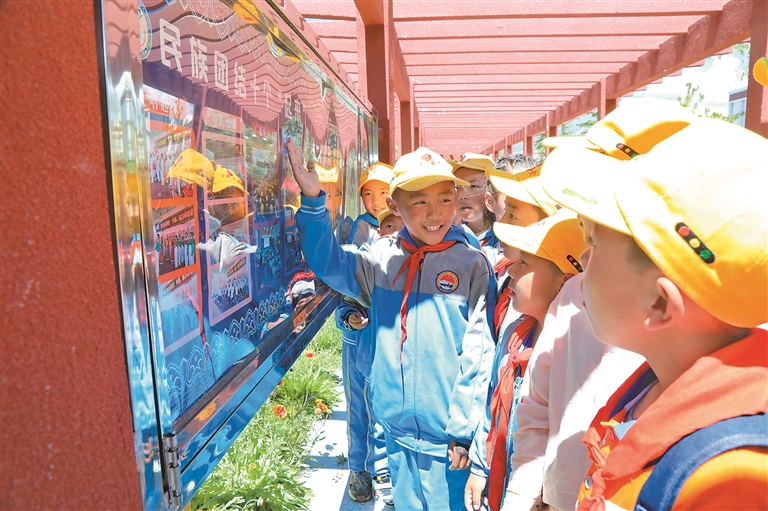 拉萨市墨竹工卡县南京实验小学学生参观“民族团结教育主题公园”主题苑。记者 唐斌 通讯员 洛克 摄