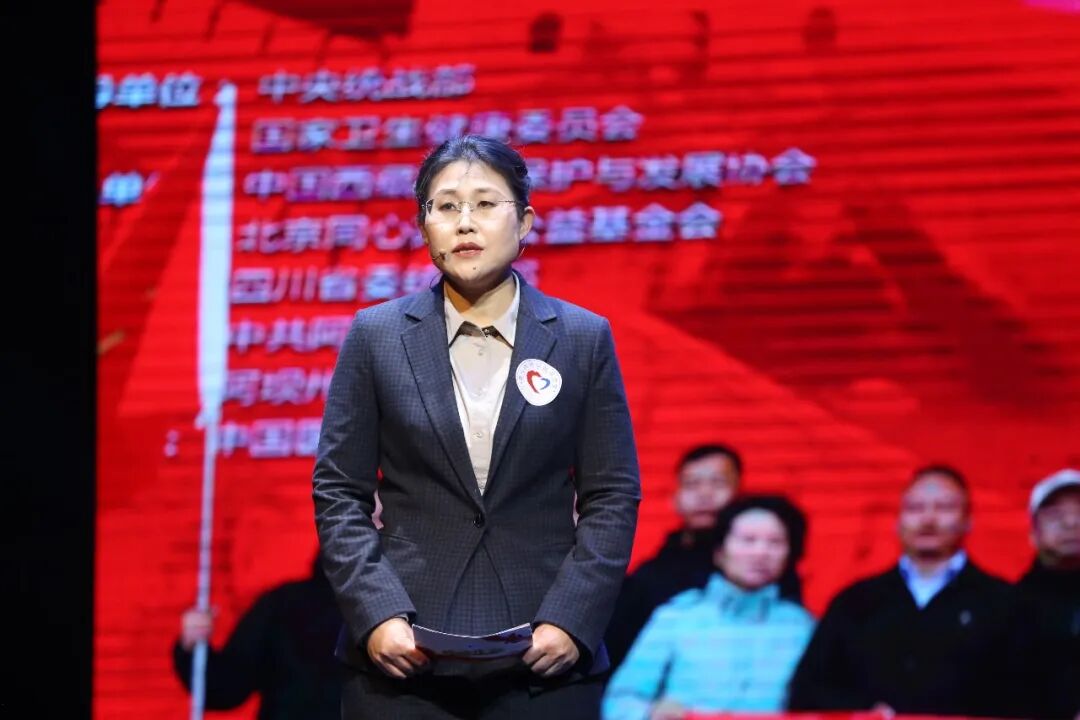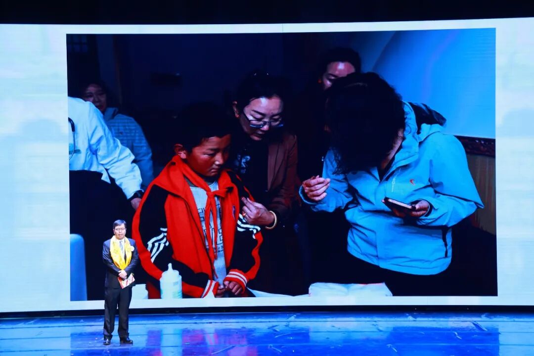 大会现场,多名医者、志愿者分享了跨越山海的公益故事,传递着生命与大爱的力量。北京清华长庚医院党委副书记王克霞,以“大爱与力量——11载坚守,用精准医术守护高原生命”为主题,讲述了董家鸿院士团队的公益事迹:11年间,团队30余次深入涉藏地区开展包虫病防治工作,用精湛医术为高原群众筑起健康屏障。他们成功救助了民警昂青一家——昂青的妻子确诊包虫病晚期,孩子小拉吴也不幸感染,团队全程接力,从术前筛查、手术治疗到术后康复,全程保驾护航,不仅治愈了患者的病痛,更用温暖陪伴化解了一家人的绝望,生动展现了医者与高原群众生死相托的信任与坚守。