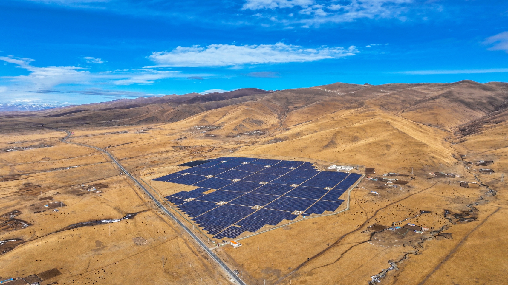 阿坝州阿坝县兰措玛光伏电站航拍画面。严易程 摄