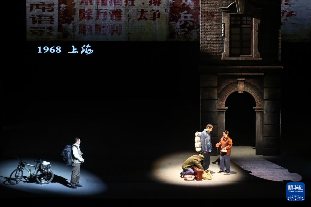 1月28日晚,在甘肃黄河剧院,甘肃省话剧院演员在话剧《青青的阿万仓》中表演。新华社记者 郎兵兵 摄