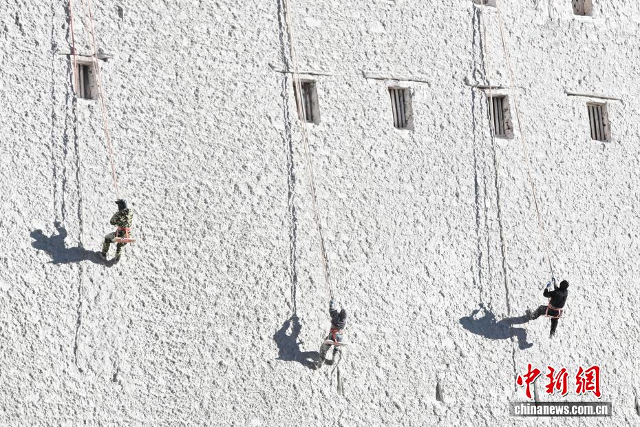 10月24日,西藏布达拉宫管委会的专业工作人员化身“蜘蛛人”悬于半空泼洒涂料,成为宫墙之上的独特风景。这一延续300余年的传统,是雨季过后保护墙体的关键举措。