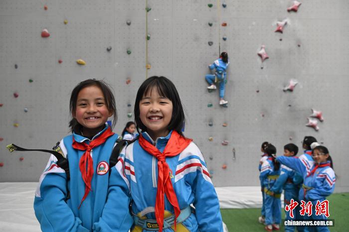 图为拉萨市实验小学的学生在学习攀岩。中新社记者 贡嘎来松 摄