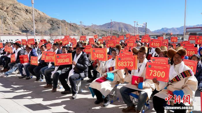 图为联合社员工身着盛装参加分红活动。普布 摄