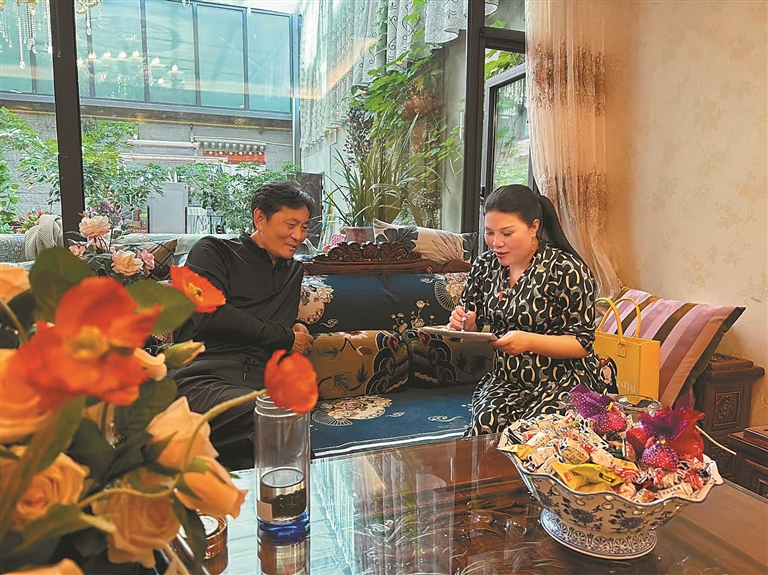 图为满格格在采访藏族民俗专家。